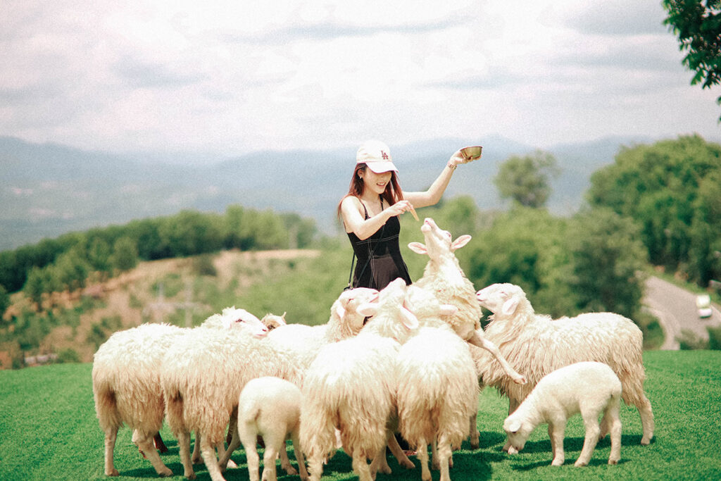 - ฝูงแกะและธรรมชาติ: คุณสามารถสัมผัสใกล้ชิดกับฝูงแกะในทุ่งหญ้า ที่ฟาร์มนี้มีพื้นที่กว้างขวาง และคุณสามารถถ่ายรูปกับแกะในบรรยากาศธรรมชาติที่สวยงาม